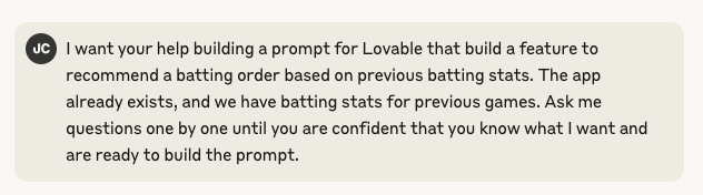 I recently built a feature to recommend a batting order. Here’s the start of the prompt: