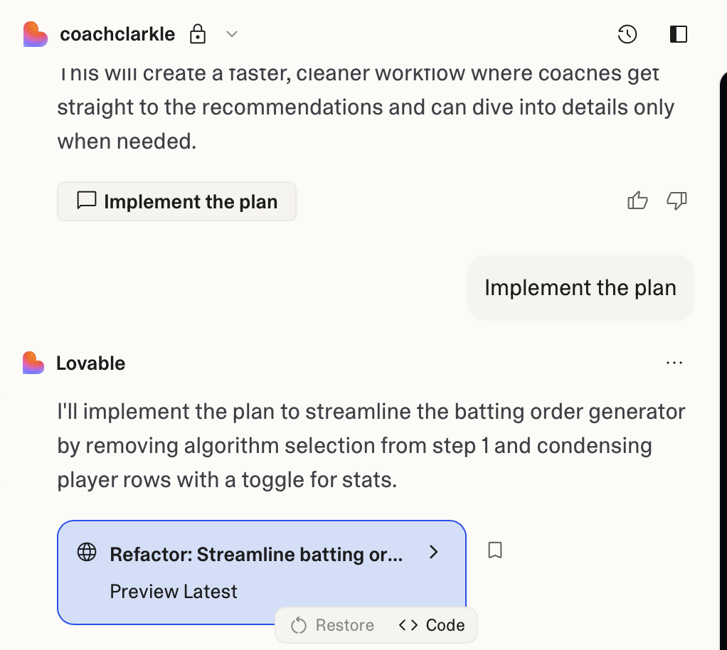 This is a collection of tips I’ve picked up over the past few weeks while building on my baseball coaching app using Lovable.